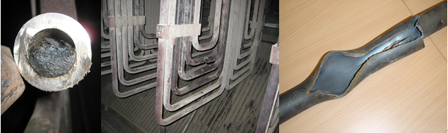 随着我国国民经济的快速发展,超(超)临界参数的火电机组已在全国蓬勃发展,这些机组的锅炉根据不同的厂家工作温度可达到571 585 606 615 620度,目前应用的管材基本上都是TP347H、TP347HFG、Super304H和HR3C. 这些不锈钢管,在运行一段时间后,内壁脱落的氧化皮,会聚集在管排水平段,形成凝结性的氧化物,当氧化物堆积到一定数量后,会引起堵管,局部过热而造成爆管,停炉。另外所有炉型中,管排自夹管及其出汽侧弯头堆积脱落的氧化皮较多,锅炉厂加工的异形接管焊缝退刀槽处基本上都是直角台阶,脱落的氧化皮通过此处变截面时,容易造成搭桥堆积,当炉膛存在较大热偏差状况时,偏差较大的管排就会超温运行,很短的时间即可产生氧化皮脱落堵塞管径,造成超温爆管。
